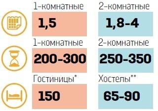 Спрос на посуточную аренду в Харькове начал расти еще до начала вступительной кампании из-за школьников с родителями, которые начали выезжать из неспокойного Донбасса для прохождения в Харькове ВНО. Многие из них задержались в городе до подачи документов в местные высшие учебные заведения города. «Абитуриенты и студенты-заочники достаточно часто пользуются нашими сервисами, этот год не исключение. АТО немножко сместило начало спроса — приезжали дети на доптестирование. Но цены за год не изменились», — заверила «Вести» риелтор сервиса «Квартиры посуточно в Харькове» — Жанна. Квартиры гостиничного типа в Харькове сейчас обходятся в 150 грн в сутки, если снимать на срок от 10 дней и выше — по 130 грн. Полноценную однокомнатную квартиру можно снять за 200–250 грн, двухкомнатную — за 300–350грн.