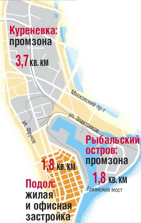 – Некоторые промзоны в Киеве занимают огромные территории у самого Днепра, к которому так рвутся застройщики на Подоле…