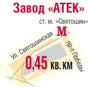 «Выставка» комбайнов и экскаваторов у входа в метро стала привычной для Святошина. Полная картина упадка завода «АТЕК» – больше известного как «Красный экскаватор» – видна с железной дороги. Остов тракторного цеха, заваренные листами ржавого металла лестница и будка проходной, темные цеха – а в 1980-е годы сюда непрерывной колонной к 8 утра шли люди от метро.