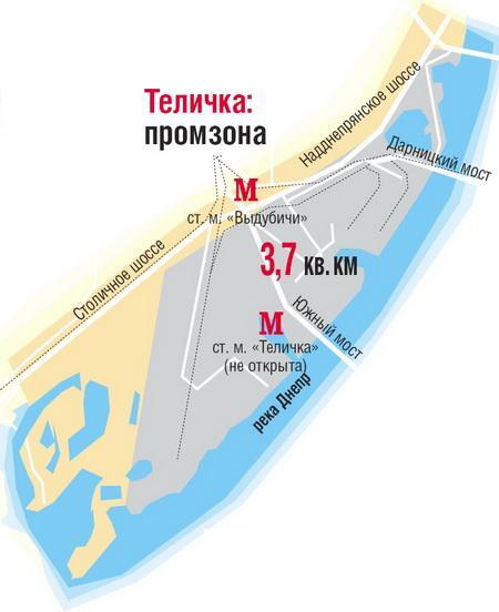 Еще один «Подол про запас» – Теличка, территория, нынешний Подол по размерам превышающая в полтора раза. Те же склады, но большей частью стройматериалов, бетонные заводы, деревообрабатывающий комбинат, электростанция. Все это – нужные городу предприятия, но находятся они у самого Днепра, на потенциально «золотой» земле.