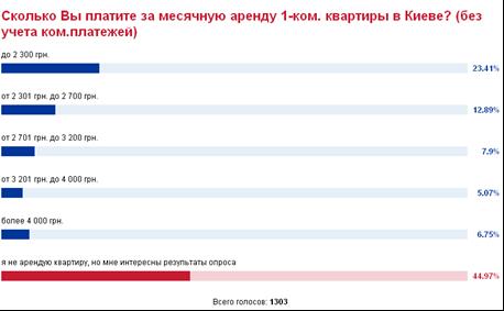 В ноябре 2009 года на сайте Prostobank.ua проводился опрос на тему «Сколько вы платите за месячную аренду (без коммунальных платежей) однокомнатной квартиры в Киеве?» В опросе приняло участие более 1300 посетителей сайта.