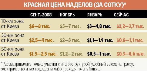 «Этот рынок практически мертвый, почти никто ничего не покупает, — утверждает директор АН «Золотые ворота» Алексей Холмецкий. — Землю берут только богачи и простаки, которые думают, что цены уже достигли дна, а это неправда, они еще опустятся. Чтобы привлечь клиентов, владельцы земли снизят цены за осень минимум на 10%, но и эта скидка вряд ли сработает». А вот ведущий аналитик консалтинговой компании SV Development Сергей Костецкий утверждает: «Число сделок выросло за лето с 300 до 1000 в месяц. И все же цены будут плавно снижаться, на 1—2% в месяц. Ведь только на Киевщине продается более 50 тыс. участков — этого хватит минимум на 5 лет».