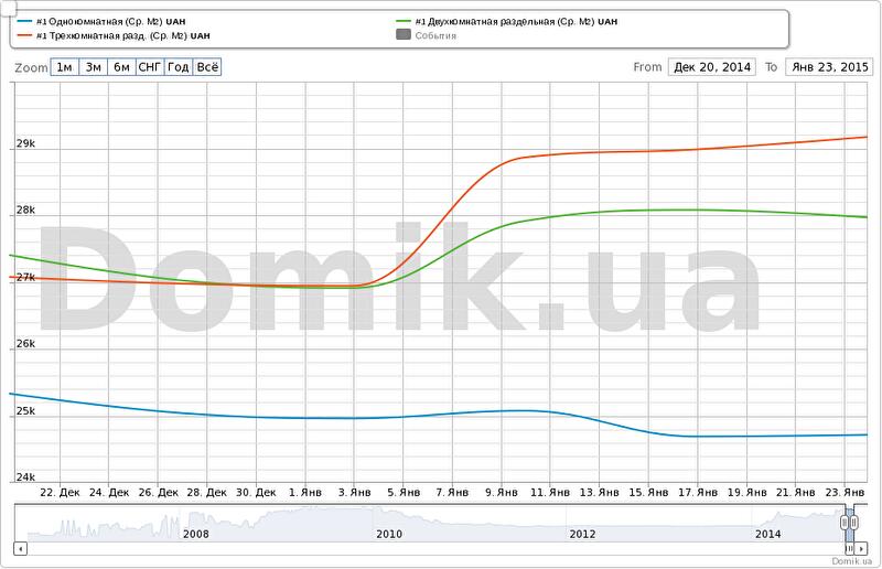 Двухкомнатная раздельная – 27 968 грн за кв.м — снижение на 0,4%;