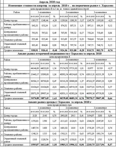 За период с 1 апреля по 1 мая 2010 года средняя цена продажи 1-3 комнатных квартир на вторичном рынке в Харькове выросла гораздо значительнее и составляют $981 за 1 кв.м.