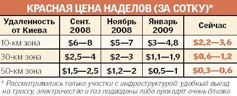 Январь-февраль — традиционно мертвый сезон для покупки земли. Это связано с неблагоприятными погодными условиями и чередой праздников, говорят риелторы. Так что сделки практически не совершались, что не замедлило отразиться на ценах. В 30-километровой зоне от Киева средняя цена сотки уменьшилась на 16,4%. Однако, как отмечает президент Земельного союза Украины Андрей Кошиль, во 2-й половине февраля наблюдалось небольшое оживление интереса со стороны покупателей. «Прошли выборы, крупные инвесторы начали делать шаги по поиску участков. Вырос интерес и со стороны обычных покупателей, которые хотят за теплое время года поставить коробку дома. Однако до подъема рынка очень далеко. Думаю, к лету земля подешевеет на 10—15%. Но это средняя температура по больнице. Потому что, если находится покупатель, то многие скидывают очень существенно. Скажем, выставляли цена $5 тыс. за сотку, а продают по $3,5 тыс.», — уточняет эксперт.