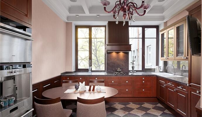 Полное доверие позволило реализовать некоторые довольно смелые идеи, ставшие в результате ключевыми для этого интерьера. Как, например, удивительная мебельно-архитектурная конструкция китайского вида в гостиной — авторская разработка и в определенном смысле ноу-хау Владимира Бондаренко. Впрочем, по индивидуальному проекту студии ARTe здесь изготовлена бóльшая часть мебели, а также двери. Из «приглашенных» брендов — только любимый «американец» Baker(столовая группа) и кухня от Poggenpohl, чей модельный ряд пользуется уважением архитекторов благодаря монументальным пропорциям.