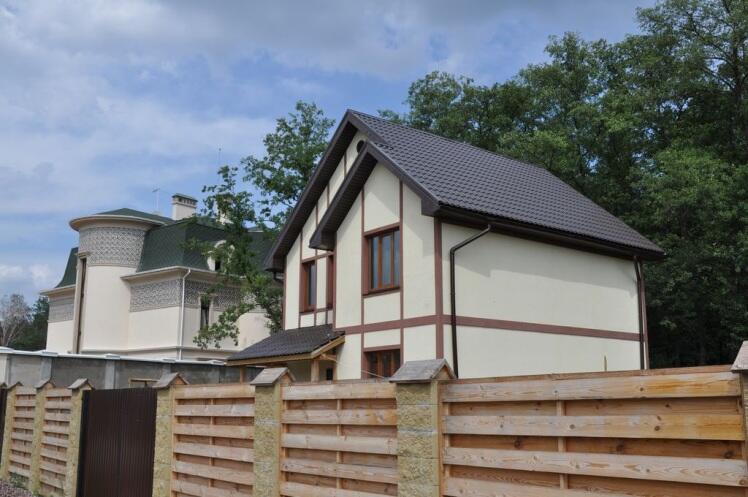 Двухэтажный коттедж, окруженный зелеными насаждениями. Находится на закрытой охраняемой территории, внутри которой детская площадка. Рядом магазины, кафе, рынок, большой супермаркет. Возможность прописки в Киевской области. Расположен в 11 км. от города. Рядом гипермаркет «Fozzy».