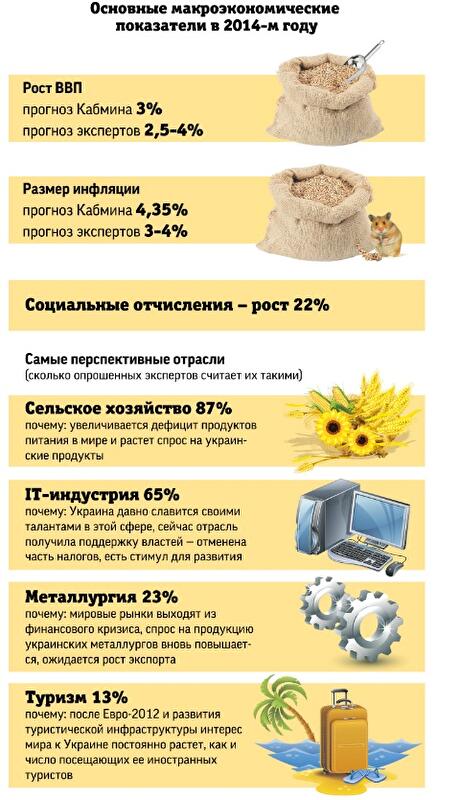 В возрождении отраслей сыграют роль и совместные проекты Украины и других стран, запуск которых ожидается в 2014-м. Например, договоренность России и Украины о развитии авиастроения, судостроения, космической отрасли и инфраструктурных проектов поможет создать 40-50 тысяч рабочих мест, подсчитал эксперт Владислав Антонов, аналитик агентства «Альпари». Такое сотрудничество благоприятно отразится на ВВП и рынке труда, где снизится уровень безработицы, считает эксперт. Договор с Китаем о стратегическом сотрудничестве даст толчок к увеличению товарооборота втрое – с 10 до 30 млрд долларов, полагает Антонов. Его коллеги из других агентств пророчат вполне успешное будущее в этом году металлургической и туристической отраслям, а также IT-индустрии.