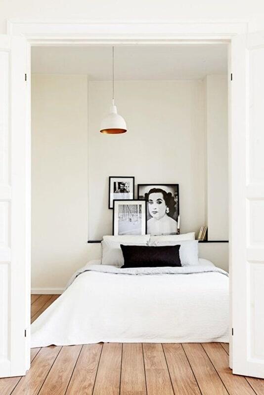 Если речь идет о небольшой комнате, то разумным будет взять за основу один из оттенков белого или светло-серого. В случае с большой спальней, вы можете смело поэкспериментировать с более темными полутонами. Так, например, вы можете выбрать доминирующим чисто-белый цвет и дополнить его всевозможными оттенками серого в различных деталях интерьера – эффект будет поистине потрясающим!
