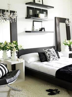Черно-белая цветовая гамма охватывает достаточно широкий спектр оттенков, поэтому вовсе не обязательно останавливаться на двух основных, крайних цветах. Наоборот, если обычный дизайн предполагает использование, в среднем, трех тонов, то вы имеете уникальную возможность сделать дизайн интерьера собственной спальни предельно объемным за счет множества монохромных оттенков. Самое главное – правильно выбрать основной цвет.