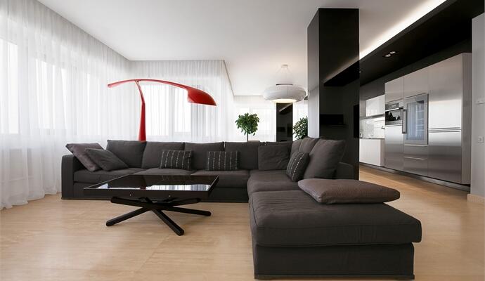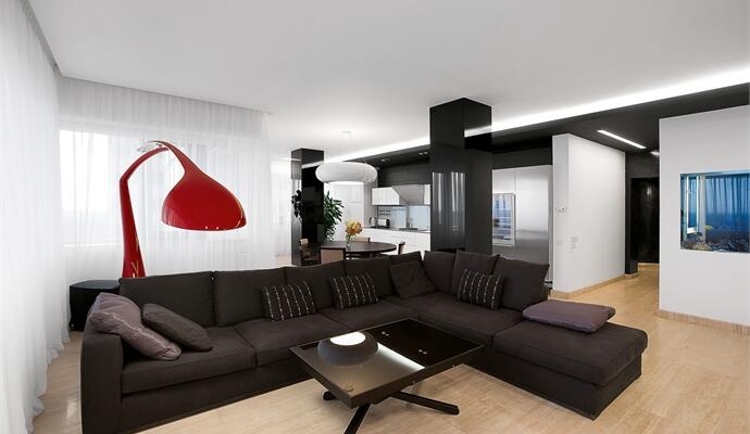 К тому же ч/б всегда проявляет невероятную скромность, охотно становясь фоном для парочки акцентных деталей в виде броских интерьерных «аксессуаров». В качестве поля для профессиональной деятельности архитекторскому дуэту « скрыпник и дзюбецкий» досталась большая, не испорченная перегородками холостяцкая квартира в одной из днепропетровских «Башен». Согласно законам физики, если здание видно практически из любого района города, с его верхних этажей весь город как на ладони. И это ценят в первую очередь эстеты и любители стратегически выгодных позиций.