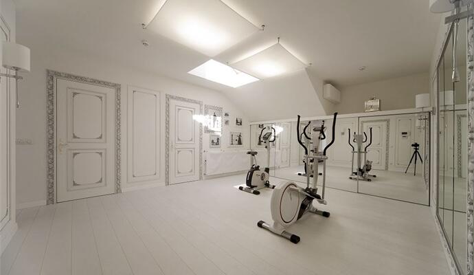 На этот раз задача, которую предстояло решить Дмитрию, звучала так: одна квартира уже есть, теперь к ней прибавилась вторая (этажом выше) — ее нужно обустроить. По планам хозяев, там должны расположиться кабинет и спортзал, а кроме того, этот уровень может быть использован как гостевой. Задача номер два: нужно объединить две квартиры — но как?