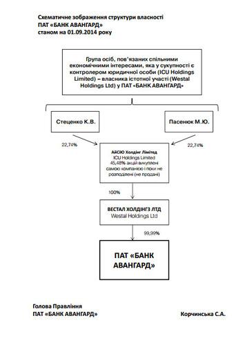 Не секрет, что связана с банком и председатель НБУ Валерия Гонтарева, которая до назначения много лет работала с финансовыми потоками украинских олигархов и банкиров, и отчасти может представлять банковское лобби. С группой ICU, которой ранее руководила первый банкир страны, связан банк «Авангард»
