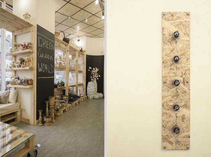 Главным украшением интерьера является свет: его большое количество необходимо цветам и комнатным растениям, которые являются главным товаром бутика. Три параллельные линии креплений для света находятся на потолке и напоминают систему искусственного орошения. Их длина составляет 14, 12 и 10 метров.
