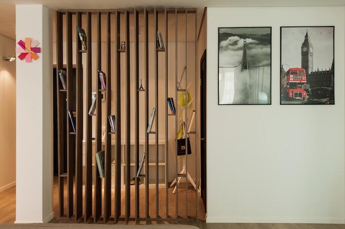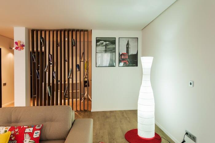 Д.Журнал: Очень интересно выглядит перегородка, которая также приходится стеллажом. Вы сами проектировали этот многофункциональный предмет или повстречали его где-то в мебельных рядах?