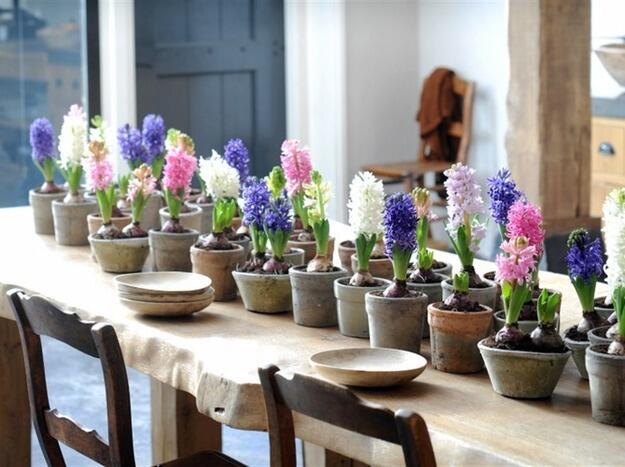 С приходом весны во многих магазинах появляются цветущие луковичные растения в горшках. Это прекрасная возможность освежить интерьер. Ароматные гиацинты, нежные нарциссы и выразительные тюльпаны – композиции из этих цветов создадут неповторимую атмосферу. Ими можно украсить обеденный стол, комод или журнальный столик.