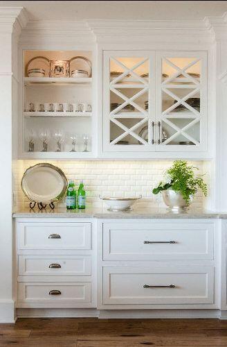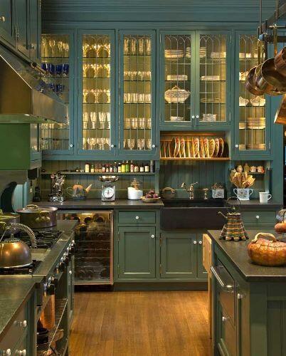 Не прячьте от глаз фамильный сервиз, хрусталь или красивую посуду. Светильники, установленные внутри шкафчиков с полупрозрачными дверцами, – это элемент, который добавит изюминку в интерьер вашей кухни. Используйте для этого гибкую светодиодную ленту или небольшие светильники. Тем самым вы не только продемонстрируете содержимое шкафов, но и создадите более интимное освещение кухни.