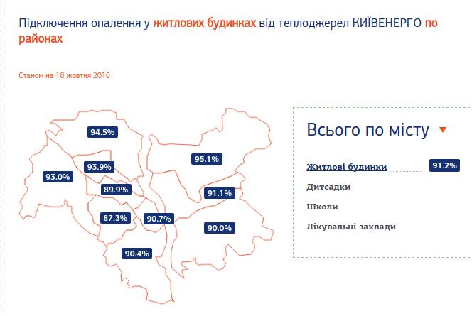 Де в Києві тепло: карта перебігу підключення опалення в Києві в 2016 році