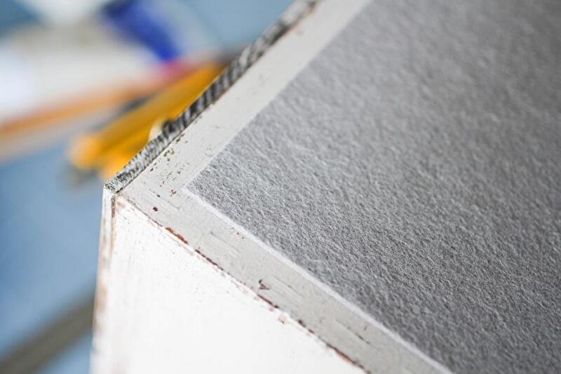А на дно ящика, чтобы он не царапал стол и поверхности полок, приклеиваем тонкий листовой ферт серого цвета.