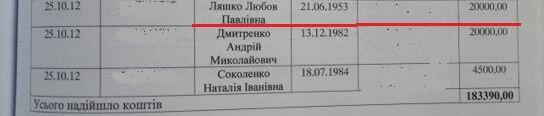Радикальну партію Олега Ляшка на останніх парламентських виборах частково профінансувала його мати. Ляшко Любов Павлівна дала на партію свого сина 20 тисяч гривень зі 183 тисячі, зібраних від громадян.