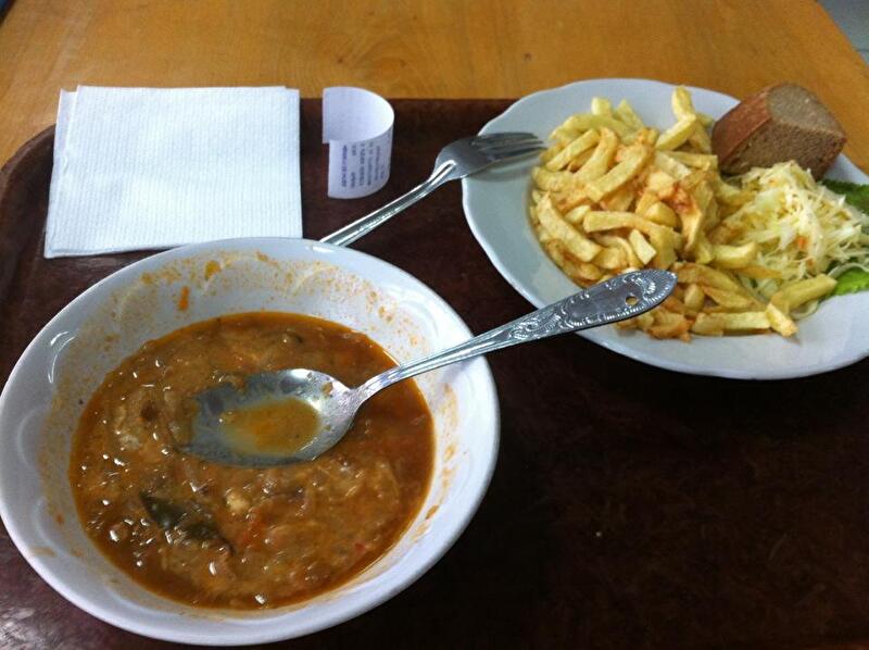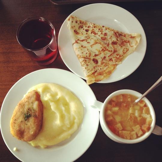 На 25 гривен можно съесть: суп с фрикадельками, блин с мясом и чай.