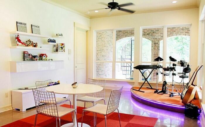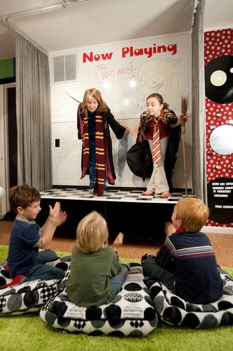 В гостиной, в детской, на чердаке, в углу, с подиумом, с зонированием, с занавесом или без – сцена, какая бы она не была, станет центром творческой деятельности вашей семьи и друзей. Сцена может быть сделана совершенно по-разному, в зависимости от ваших возможностей и пожеланий: сцена может быть частью интерьера, подстраиваясь под пространство, или наоборот – стать центром интерьера комнаты, сцену можно спрятать за занавески… Вариантов масса – выбирайте подходящий вам. Для вдохновения представляем Вам десять примеров домашних вариантов сцены. И пусть ваши таланты выходят за рамки дома — на большую сцену.