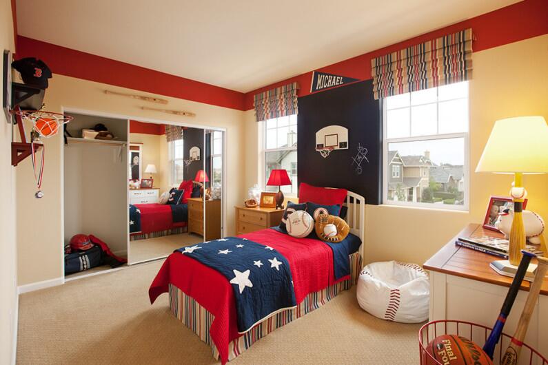 Поинтересуйтесь, какая тематика для мальчика ближе всего: спорт, музыка, техника, космос или корабли. Это может служить руководством к действию, когда настанет время ремонта. Например, над кроватью можно смонтировать парус, к стене прикрепить баскетбольное кольцо, а для натяжного потолка выбрать рисунок звездного неба с встроенными светодиодами.