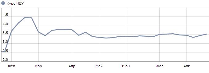 С конца весны соотношение гривны и юаня идет по ровному графику: