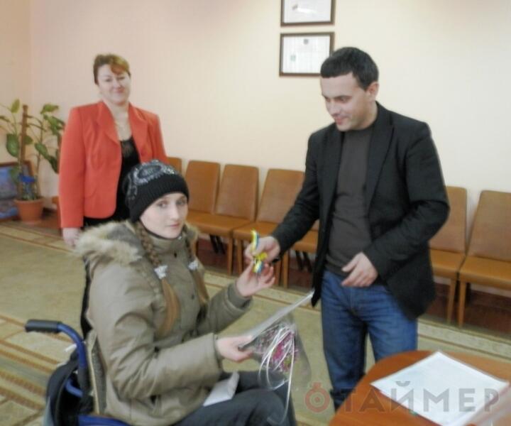 Мэр города Балта Одесской области Сергей Мазур вручил ключи от дома победительнице пятого Всеукраинского конкурса «Красота без ограничений» Алёне Онищук.