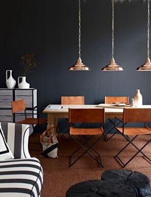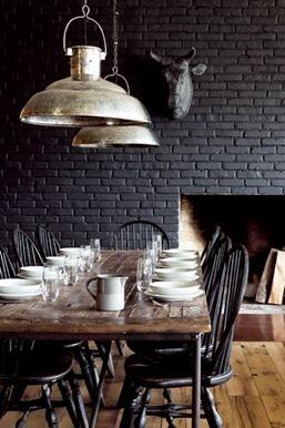 Черные или темно-серые стены в сочетании с мебелью из темного дерева дают ощущения цельности, основательности композиции. К счастью, как у дизайнеров-профессионалов, так и у обычных любителей усовершенствовать свой интерьер, сегодня есть множество приемов, чтобы достичь такого эффекта. Примером, излюбленный многими эффект грифельной доски: черные стены, на которых можно писать мелом, станут отличным фотом для столовой. Что касается мебели для гостиной, то ее можно выбрать в интернет-магазине, где вы найдете множество предложений столовых гарнитуров темных тонов.