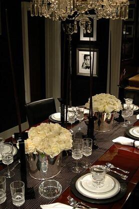 Иногда не мешает добавить каплю цвета в темный интерьер столовой: например, обивка кресел яркого тона или большой букет свежих цветов — такие детали оживляют композицию, создают акцент.
