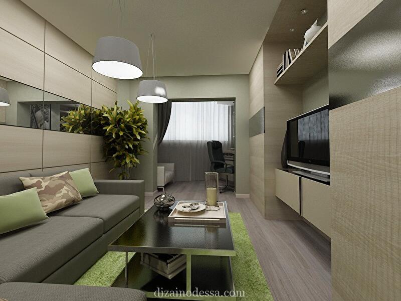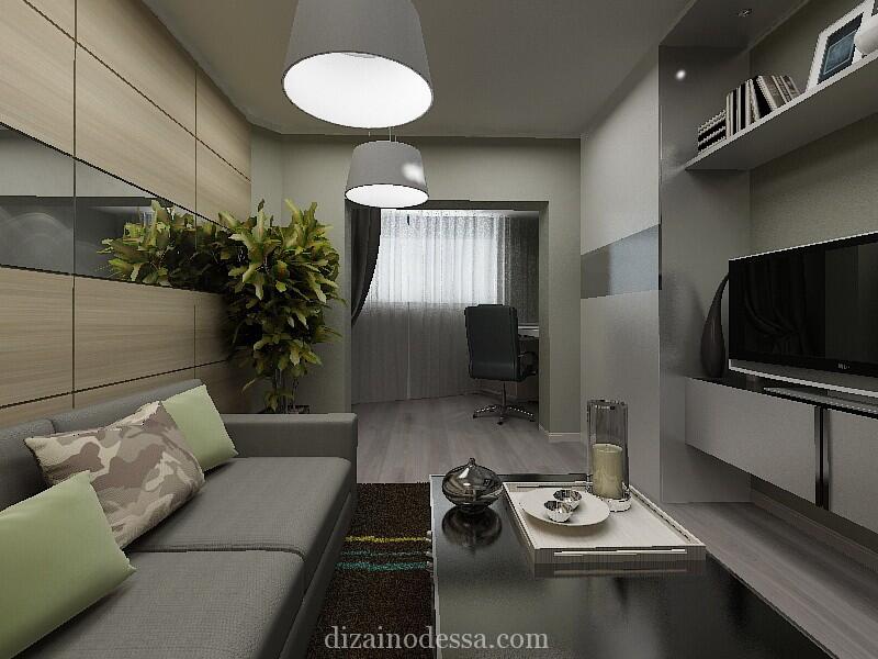 Дизайн-интерьера 3-х комнатной «чешки» с перепланировкой одной комнаты в гостиную, которая совмещена с кухней. Выгодно организована рабочая и обеденная зона и зона отдыха гостей. Стиль — современный минимализм. Одна из спален расширена за счет балкона, в котором размещено рабочее место.