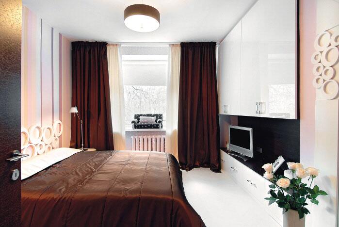 Единственный недостаток встроенного шкафа – его проблематично передвинуть или поставить в другое место. Для расширения пространства установите на дверцах шкафа зеркала – они зрительно увеличат небольшую спальню.