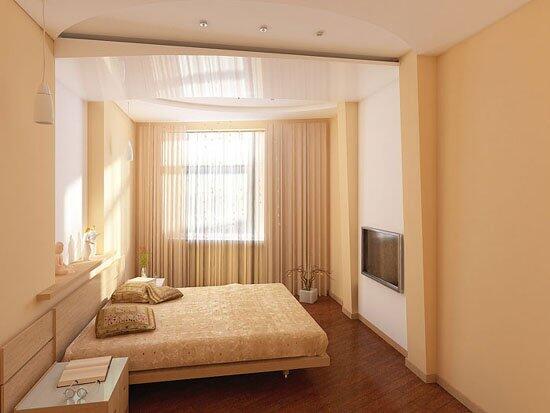 Существует стойкое убеждение, что такую спальню можно оформить только в светлых, бежевых или песочных тонах, однако это совсем не так. Глубокие, насыщенные, но не темные цвета могут зрительно углубить помещение и расширить граница пространства. Спокойный зеленый или фиолетовый цвета, в сочетании со светлой мебелью прекрасно гармонизируют обстановку спальни. Не стоит использовать для оформления общего фона помещения темные цвета – шоколадный или венге, их можно применять мебели или аксессуарах.