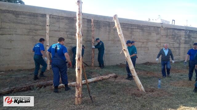 На данный момент в пункте временного размещения установлено десять палаток, 40 деревянных опор для пункта питания, проводится водоснабжение и канализация.