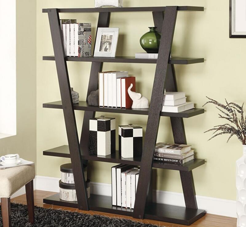 Открытые полки, пожалуй, самое простое решение для хранения книг, да и имеют заметные положительные стороны. В интерьере они занимают мало места, они мобильны и стоимость на порядок ниже закрытых шкафов. Такие конструкции отлично вписываются в любой интерьер и могут быть исполнены в различных стилях.