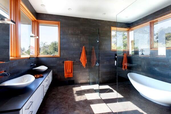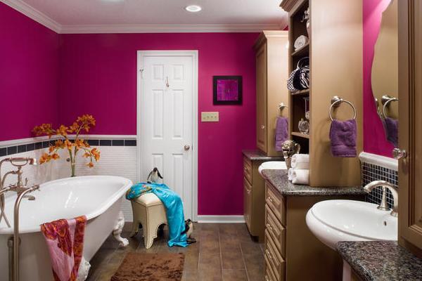 А вот яркие пятна следует выбирать, исходя из того, чем для вас будет ванная комната. Так, красные оттенки символизируют страсть, лидерство. По мере осветления красный цвет может настраивать на романтический и позитивный лад. Синие и зеленые оттенки – покой, расслабление. Желтые дарят позитив и уверенность в себе. Оранжевые – бодрость, оптимизм и яркое настроение.
