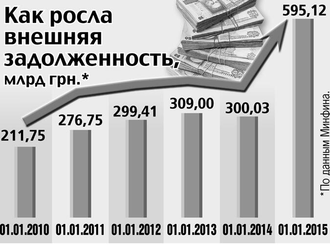 - Все дело в девальвации гривны, - поясняет экономист Всеволод Степанюк. - Из-за этого даже невзирая на уменьшение долга в долларовом эквиваленте, в нацвалюте он удвоился.