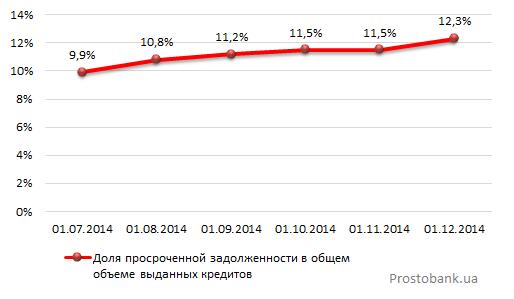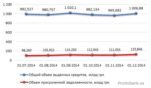 За январь-ноябрь 2014 года объем проблемных кредитов увеличился на 76,47%; общий объем выданных кредитов увеличился на 10,48%, или 95,478 млрд гривен. Доля "просрочки" по сравнению с началом года выросла на 4,6 п.п.