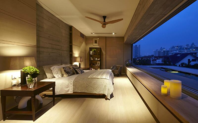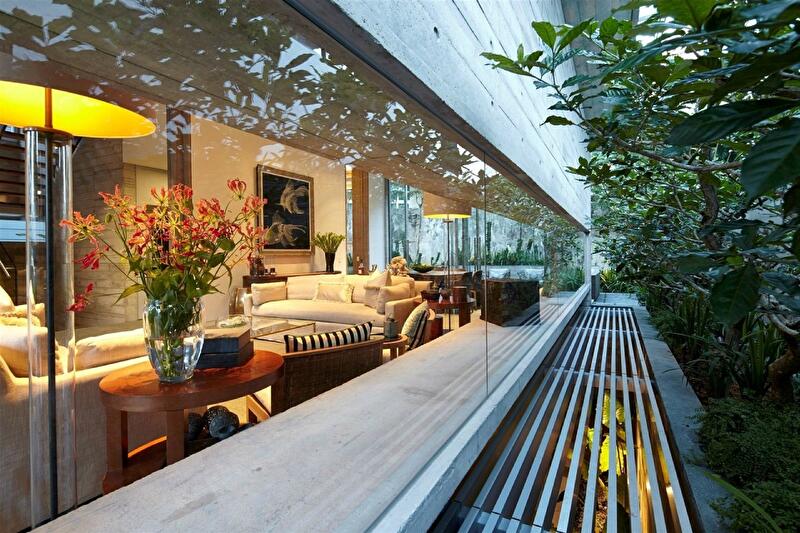 Дом, построенный на небольшом участке в центре Сингапура, представляет собой монолитную бетонную конструкцию. Опалубка была умышленно сделана из необработанных досок, что придало поверхности наружных и внутренних стен интересную фактуру.