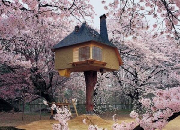 Этот домик на дереве построил Такаши Кобояши, один из ведущих японских архитекторов домов на деревьях. Он спроектировал его для рекламы Nestle. С тех пор дом стоит на острове Хоккайдо.