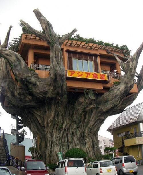Этот высотный ресторан в Японии построен на громадном и очень старом баньяновом (разновидность фикуса) дереве.