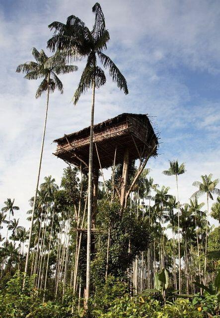 Племя Короваи в Новой Гвинеи живут в домах на деревьях, некоторые из которых достигают 40 метров в высоту, таким образом они избегают нападения охотников за головами соседнего племени.