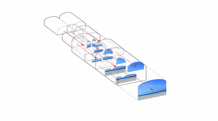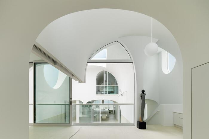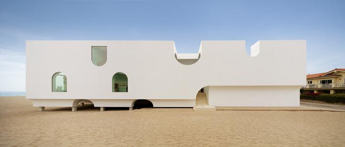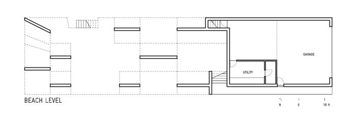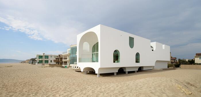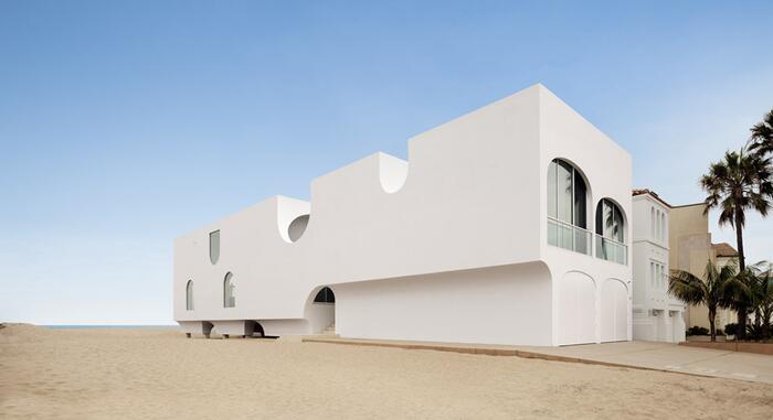В простой прямоугольный вытянутый объем архитекторы бюро Johnston Marklee поместили серию однонаправленных сводчатых пространств, что позволило расширить обзор океана от фасада с видом на пляж на запад, через улицу к восточной границе участка.