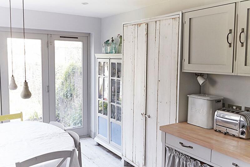 3. Твиг не сильно заморачивалась с мебелью. Кухню собрала из старых шкафчиков, предварительно покрасив их в сочетающиеся цвета.