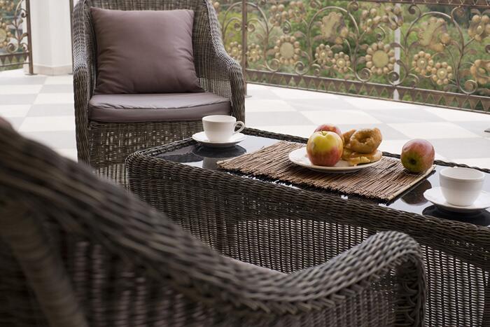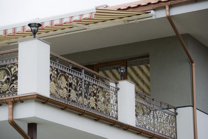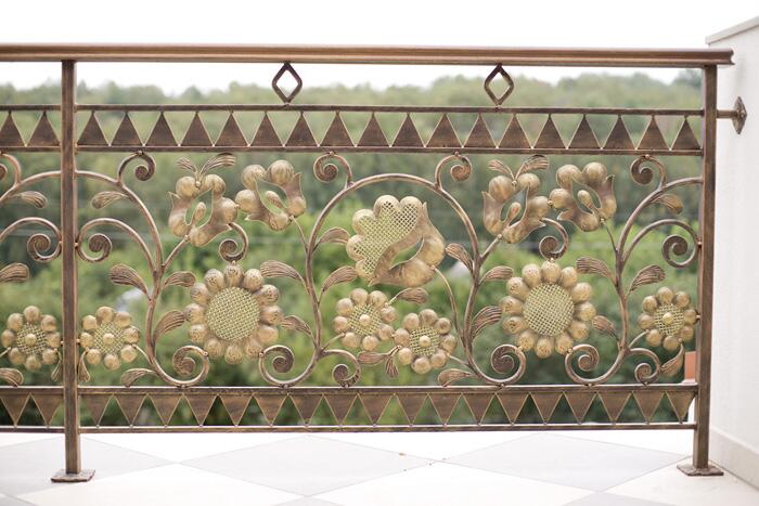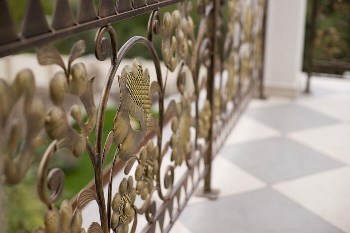 В художній орнаментальній ковці для перил відкритої тераси використаний символ сонця, ромбічні узори землеробських племен трипільської культури — символ родючості. Символ сонця здавна символізував найважливіше — життєдайну силу, необхідну для земного життя та процвітання. Символ сонця зображували у формі квітки. Рослини Сонця круглої форми: кульбаба, нагідки, соняшник, рум’янок, первоцвіт та ін.