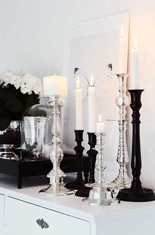 Используйте в деталях черный цвет: двери черного цвета, деревянный стул, окрашенный в черный, или черные подсвечники. Этот цвет необъяснимо придает элементам декора налет роскоши, даже если они совсем не дорогие.