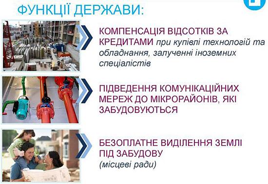Чтобы привлечь застройщиков, государство обязуется компенсировать проценты по кредитам при покупке технологий и строительного оборудования. Кроме того, за счет государства планируется проложить инженерные сети в микрорайонах, которые строятся, а местная власть бесплатно выделит землю.