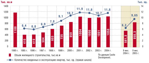 По данным девелоперской компании Castle Development (г.Киев; с 2004 г.; 30 чел.), в Киеве в прошлом году было построено и введено в эксплуатацию около 1,13 млн кв.м жилья. Планы на 2006-2007 гг., скорее всего, полностью реализованы не будут из-за прошлогодних конфликтов между жильцами и застройщиками, в ходе которых строительство блокировалось. “Вероятнее всего, планы министерства будут сорваны в результате замораживания более полутора сотен проектов в столице”, — предполагает Валерий Кирилко, директор Castle Development. По его словам, в 2007-2008 гг. жилья будет введено на 200-300 тыс.кв.м меньше, чем в 2005 г.