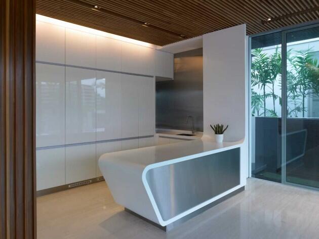 Этот проект выполнен в морской экологичной тематике и расположен на береговой линии Сингапура. Волнообразный концепт с широкими нависающими краями обеспечивает хорошую защиту от горячего Восточного и Западного солнца, и открывается для Севера и Юга. Хорошая естественная перекрестная вентиляция обеспечивается благодаря открытым стеклянным дверям, позволяя холодным морским бризам попадать в дом сквозь специальные отверстия. Переработанная древесина во внешней отделке сдерживает резкое повышение температуры в жаркие дни.
